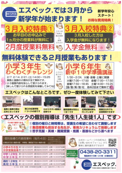 【3月新学年スタート!】今なら2月授業料&入学金が無料になる特典受付中。