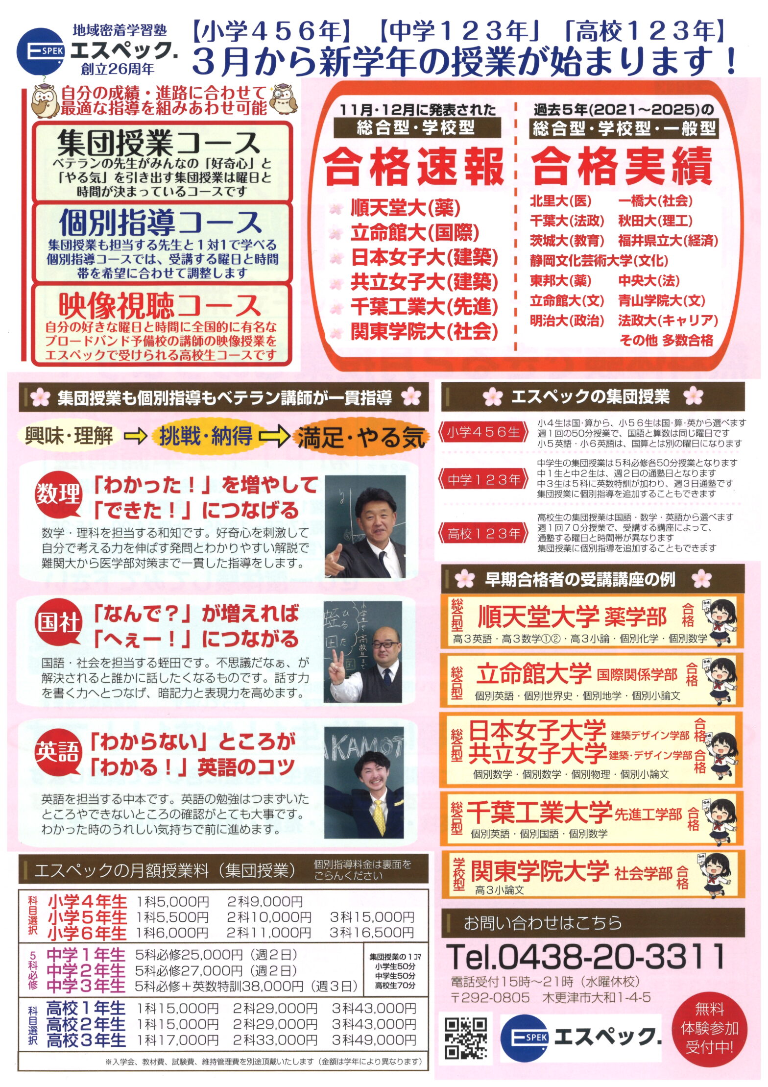 学年や志望校に合わせ、集団・個別・映像を最適に組み合わせることが可能です。無料体験・資料請求はこちらから お電話:0438-20-3311(15時〜21時/水曜休) 木更津駅東口すぐ!お気軽にお問い合わせください。